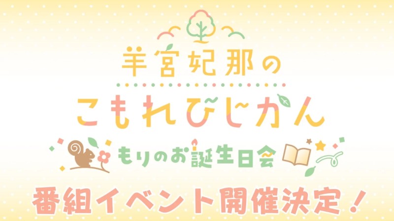 文化放送地上波にて、毎週日曜日24時30分から放送中 『羊宮妃那のこもれびじかん』 2026年3月22日(日)に番組初のイベントが開催! 3月26日が羊宮さんのお誕生日ということでイベントタイトルは… 羊宮妃那のこもれびじかん 番組イベント~もりのお誕生日会~ こもりすのみなさんでお誕生日を一緒にお祝いしましょう!