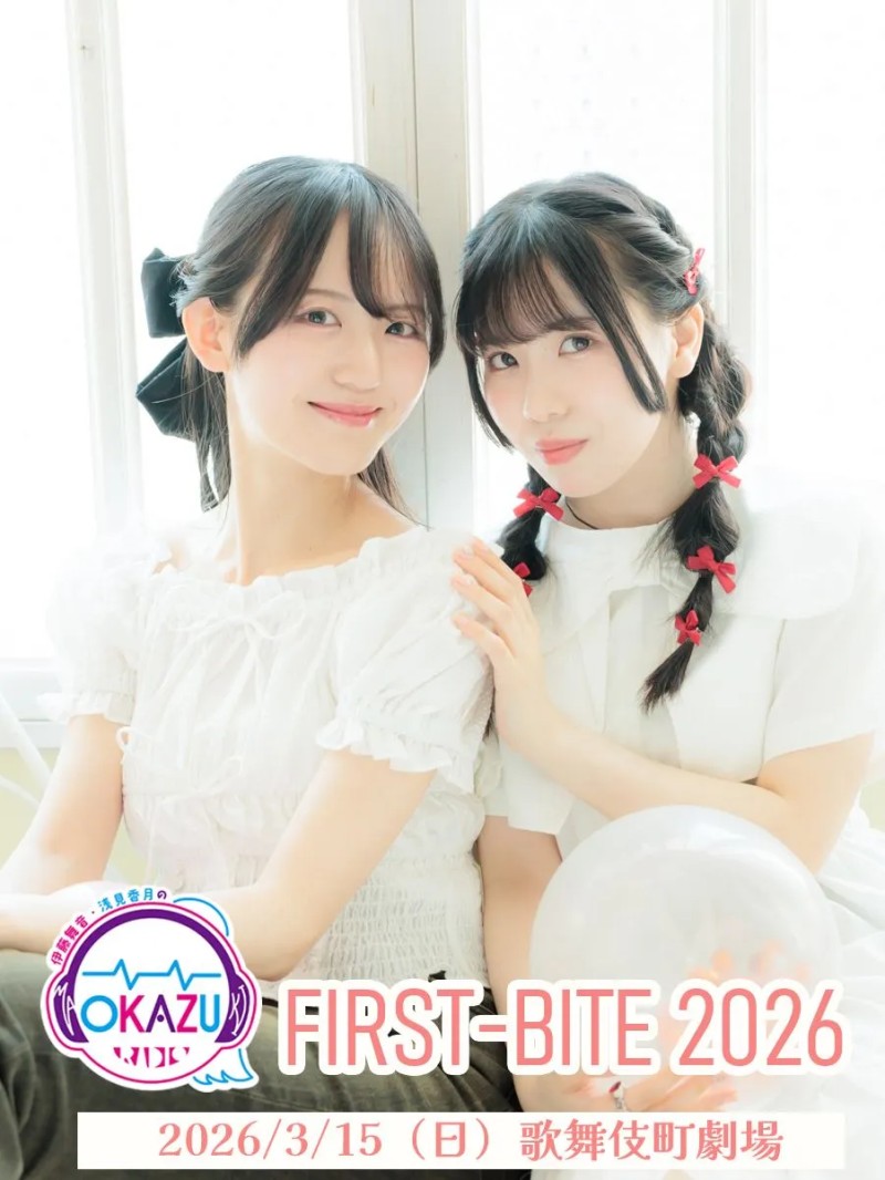開催日:2026年3月15日(日) 開演時間: 【昼の部】14時30分開場/15時開演 【夜の部】18時30分開場/19時開演 会場:歌舞伎町劇場 出演:伊藤舞音、浅見香月 ※カラオケ音源協力:DAM第一興商 ※スタンド花・祝い花、ファンレター・プレゼントに関するお知らせを追記いたしました(2/17更新) ※応援グッズについてなど開演中の注意事項を追記いたしました(3/9更新) --------------------------------------------------- 【開演中のお願いと注意事項】 写真撮影・録音・録画は一切禁止とさせていただきます。 ペンライト等、応援グッズはご使用いただけますが、鳴り物(音の出る応援グッズ)は当イベント物販で販売されるグッズ以外は使用禁止です。 ペンライトは光量の多いものと30センチ以上のものは禁止です。本数制限はございません。 うちわは席からはみ出るような大きさは禁止です。 いずれの応援グッズも他のお客様の視界の妨げにならないよう、胸元までの高さでご使用をお願いいたします。ただし、他のお客様のご迷惑になるとスタッフが判断した場合は、こちらから注意させていただきます。 以上の事項を遵守していただけない場合やスタッフの指示に従っていただけない場合は、公演を一時中断または中止とさせていただく場合やお客様に退席していただく場合もございます。 【スタンド花・お祝いの花に関して】 お客様がご自身でスタンド等の祝花を手配される際は、以下の点を必ずお守りください。 ※今回の公演はスタンド花の受け取りのみとさせていただいております。 アレンジ花などの楽屋花の送付はお控えくださいますようお願いいたします。 ・配達着日時指定 指定到着日時は、公演当日2026年3月15日(日)午前中指定にて、花屋または宅配業者に必ずご指示ください。 ・回収指定 2026年3月15日(日)すべての公演終演後までにスタンド花のお引き取りをしていただきますよう、 花屋さんまたは宅配業者へ必ずご指示をお願いいたします。 なお、当日の回収可能時間は同日「22時頃」とお伝えください。 (公演当日の回収が条件となります。回収が公演翌日になります場合はお受けできませんのであらかじめご了承ください。) ・大きさ フラワースタンドについては、底辺(スタンド足部分)が40センチ×40センチ、高さが180センチ以下のものでお願いいたします。 ・その他禁止事項 スタンド用札に「住所」「電話番号」が記載されたものは会場に飾れません。特に法人団体様はご注意ください。 上記、指定時間外にお届けの場合は、お受け取りいたしかねます。 スタンド花の会場内(会場敷地内の場外も含む)での設置場所についてはご指定いただけません。 渋滞などによる配達のトラブルや会場内の都合により、会場に設置できない場合がございますので、 あらかじめご了承ください。 ・送付先 〒160-0021 東京都新宿区歌舞伎町1-6-12 ハナミチ東京 歌舞伎町1F・B1F おかづラジオFIRST-BITE2026事務局 宛 受取電話番号 03-4572-8731 ※当日搬入の際に上記の番号にご連絡いただくように花屋、または宅配業者にお伝えください ※会場の番号となりイベントに関する問い合わせは一切お受けいただけません。 ご迷惑になりますので、くれぐれもお電話されないようにお願いいたします。 【ファンレター・プレゼントに関して】 本イベントではプレゼントの受付はいたしません。 会場にイベント出演者宛のファンレターBOXを準備させていただきます。 お手紙は誰宛のものかわかるよう、出演者名をご記入ください。物品のプレゼントは受け付けておりません。 また、以下に挙げる物はお受けいたしかねますのでご了承ください。 ・手紙以外の物 ・無記入のグリーディングカードやメッセージカード ・デジタルコード付きのカードや金券・商品券 ・手紙の内容に連絡先等の個人情報の記載があるもの 出演者、スタッフへの手渡し、また楽屋への差し入れもご遠慮させていただきますので、必ずファンレターBOXに入れていただきますようお願いいたします。 お持ちいただいた手紙はスタッフが確認後、本人にお渡します