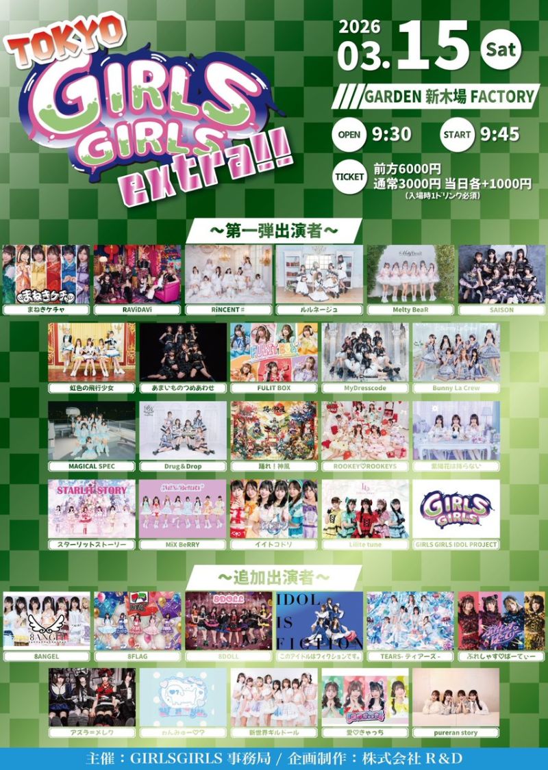| 11:45~12:05 | GIRLS GIRLS IDOL PROJECT 特典会時間: 12:15~13:25 |