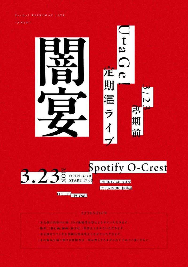 注意事項をご一読の上ご来場ください。本公演の内容の口外、SNS投稿等は禁止とさせていただきます。撮影(静止画/動画)録音は一切禁止とさせていただきます。本公演はリフト含む危険行為は禁止とさせていただきます。その他本公演に関する質問等は一切お答えできませんので予めご了承ください。