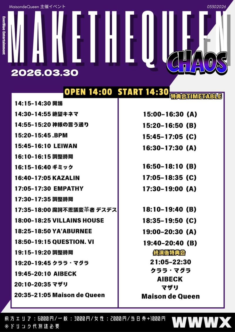 当日券¥1,000各チケット料金に+1000円