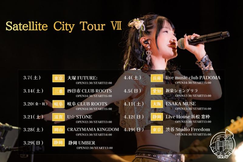 亜咲花によるライブツアー「Satellite City Tour VII」。イベント中は他のお客様のご迷惑にならないように、ルール、マナーを守ってお楽しみいただけばと思います。カメラ・ビデオカメラ・携帯電話・録音機器等による撮影・録画・録音行為、モッシュ、ダイブ、リフト、肩車、円陣を組むなどの行為、関係のない大声を張り上げたり、MIX、イェッタイガーなど、周囲のお客様に迷惑となるコールや行為も厳禁です。