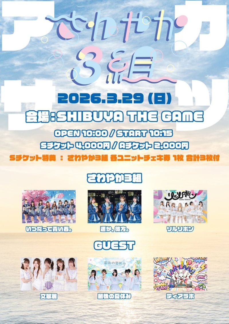 S席¥4,000さわやか3組 各ユニットチェキ券 1枚 合計3枚付+1D