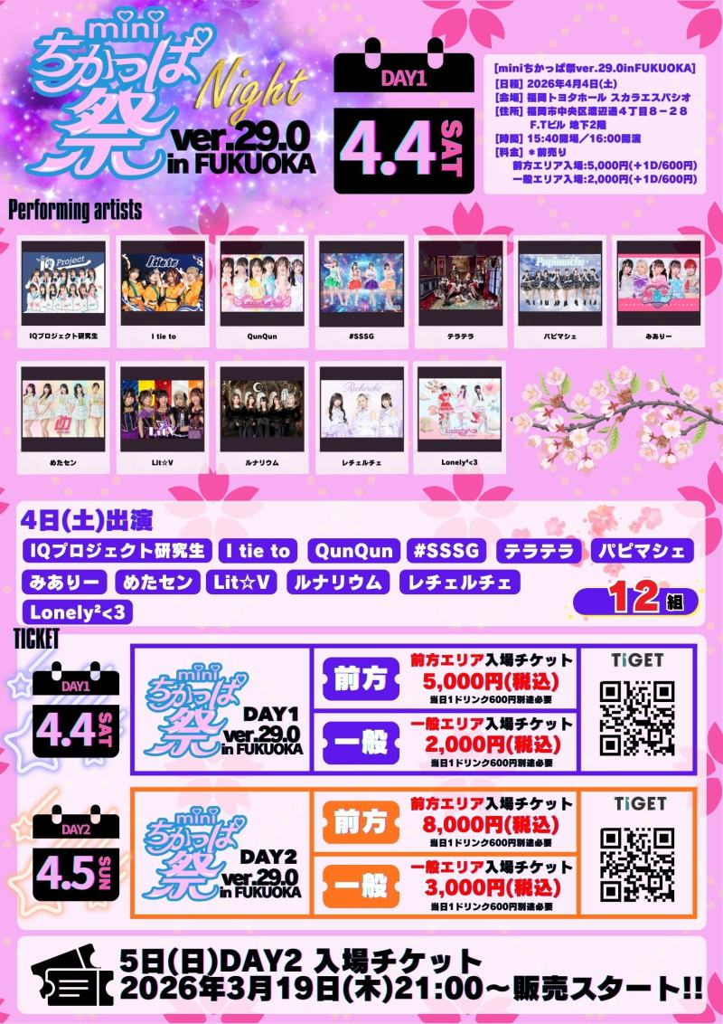 | 17:45~18:05 | IQプロジェクト研究生 特典会時間: 18:20~19:20 |