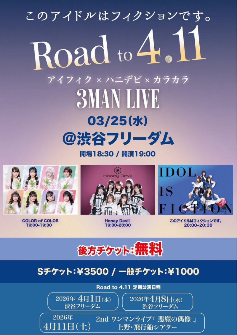 “Road to 4.11” 『アイフィク x ハニデビ x カラカラ 3MAN LIVE』