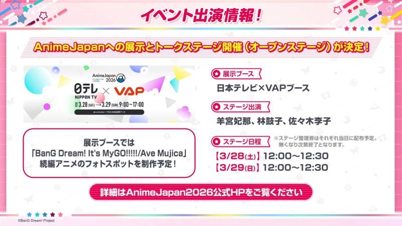 展示ブースでは「BanG Dream! It's MyGO!!!!!/Ave Mujica」続編アニメのフォトスポットを制作予定!