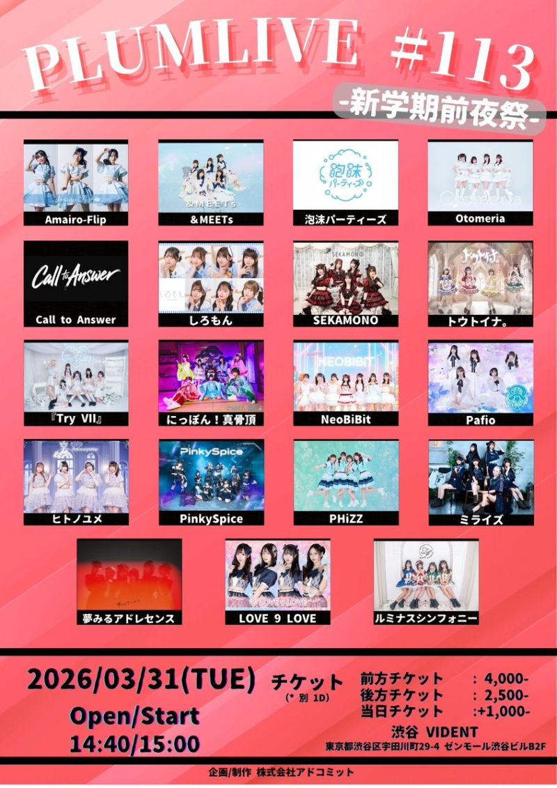 | 19:30~19:50 | LOVE 9 LOVE 特典会時間: 19:55~20:55 |