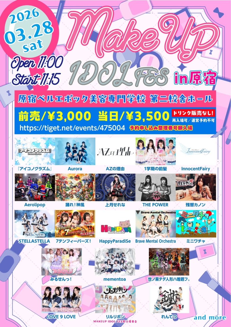※ドリンク販売なし ※再入場可 ※TIGET申し込み整理番号順入場