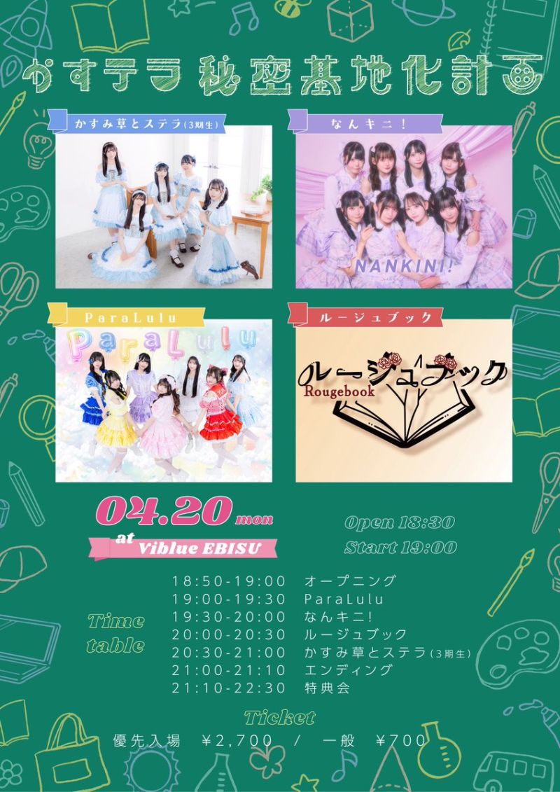 主催対バン開催決定。かすみ草とステラ3期生が出演するイベントです。お目当て入場特典として写メ券1枚が付きます。