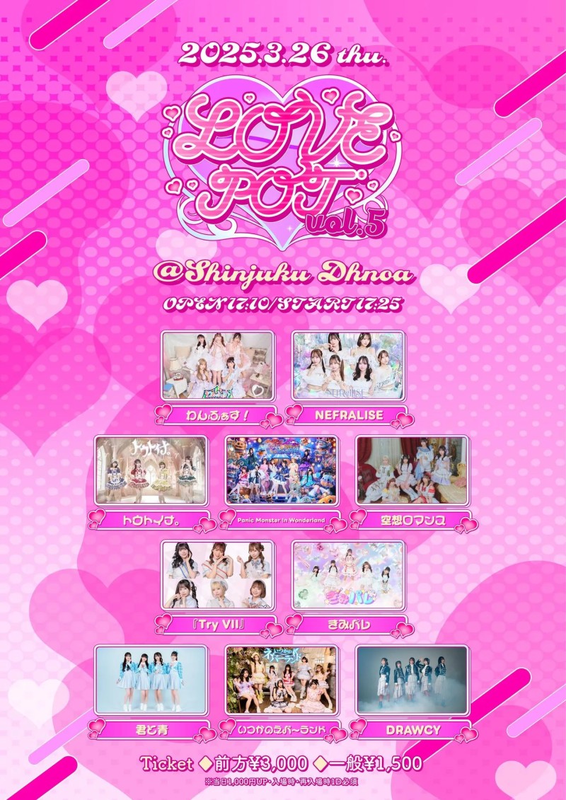 前方チケット¥3,000整理番号順入場、1ドリンク別