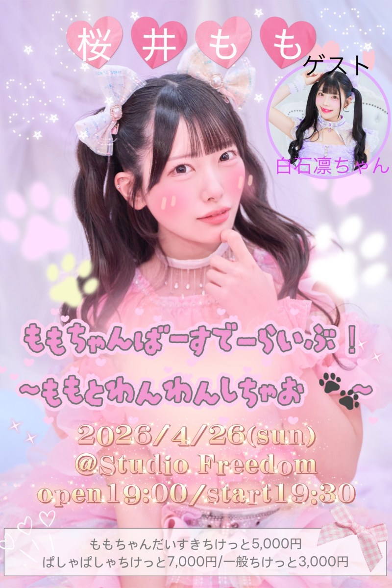 ももちゃんだいすきちけっと(優先入場)¥5,000整理番号順入場1ドリンク別6歳以上チケット必要