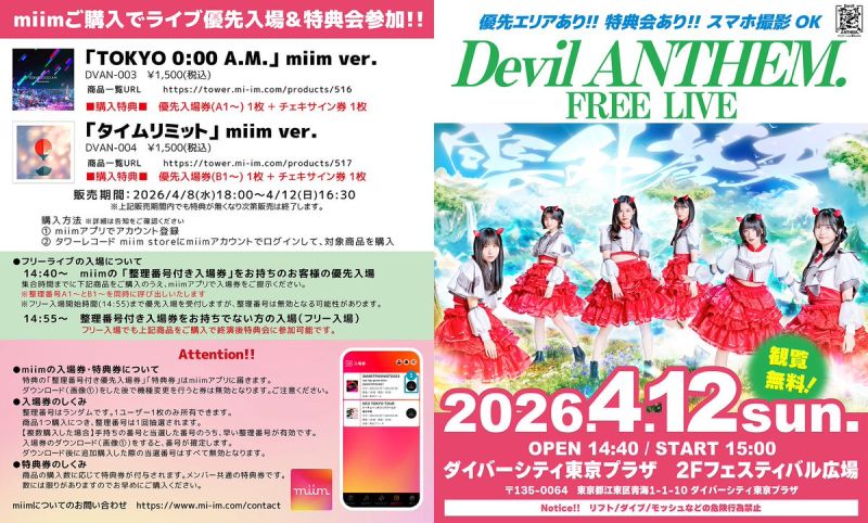 「TOKYO 0:00 A.M.」miim ver.¥1,500優先入場券(A1〜)1枚+チェキサイン券1枚
