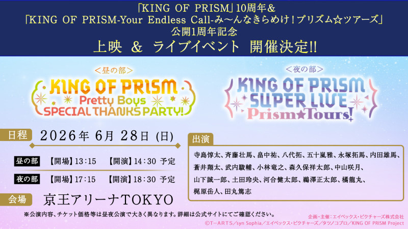 「KING OF PRISM」10周年&「KING OF PRISM-Your Endless Call-み〜んなきらめけ!プリズム☆ツアーズ」公開1周年記念 上映&ライブイベント