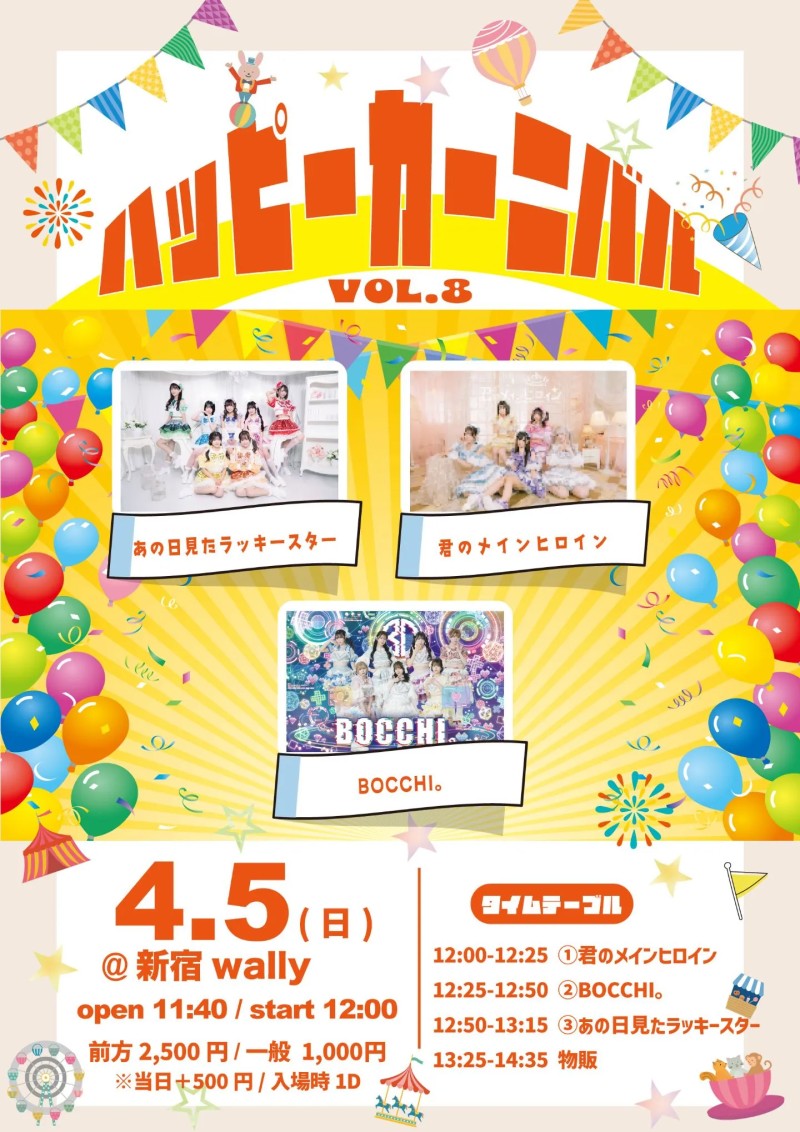 前方チケット¥2,500整理番号順入場、1ドリンク別、6歳以上チケット必要