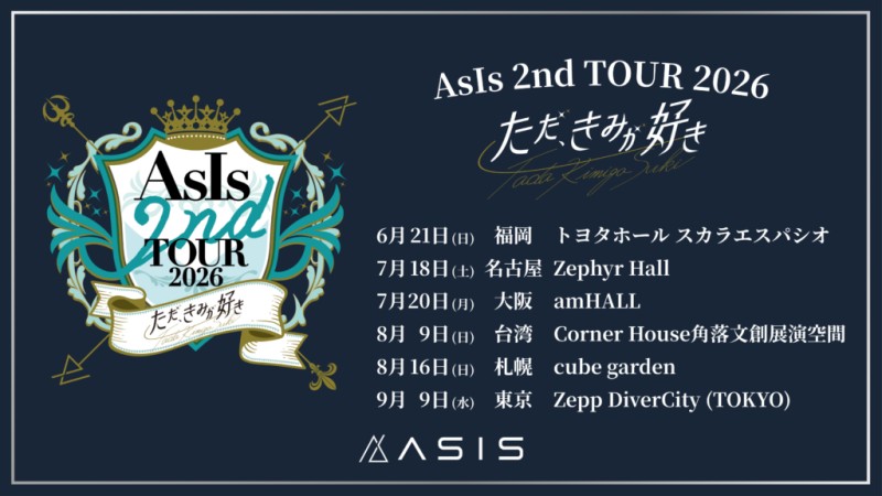 AsIs2度目となる、全6都市を巡るツアーの開催が決定いたしました。