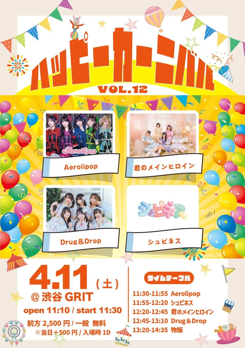 前方チケット¥2,500整理番号順入場、1ドリンク別、6歳以上チケット必要