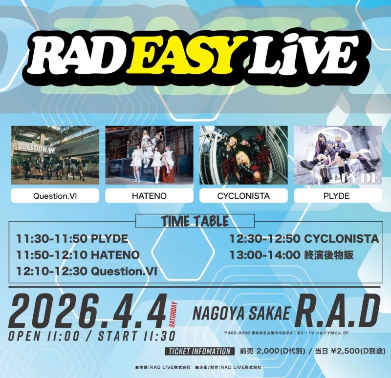 一般¥2,000整理番号順入場、1ドリンク別、6歳以上チケット必要