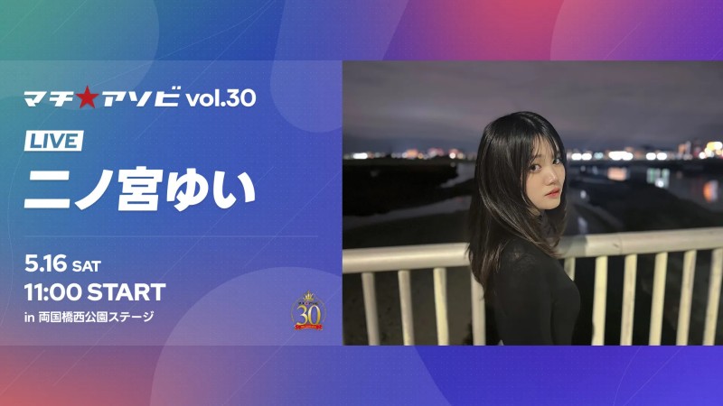 マチ★アソビvol.30にて、「二ノ宮ゆい」によるスペシャルライブが開催決定!様々な楽曲が盛りだくさんの一時間、どうぞお楽しみください!