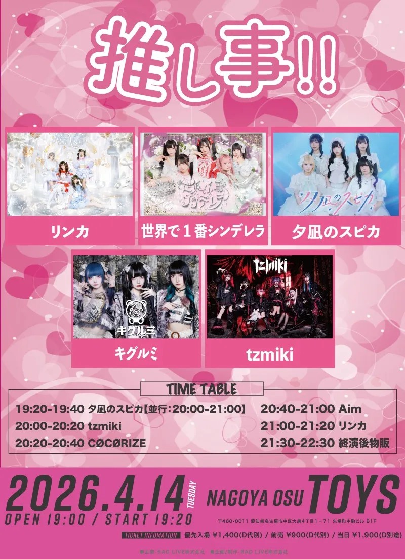 優先エリア¥1,400整理番号順入場、1ドリンク別、6歳以上チケット必要