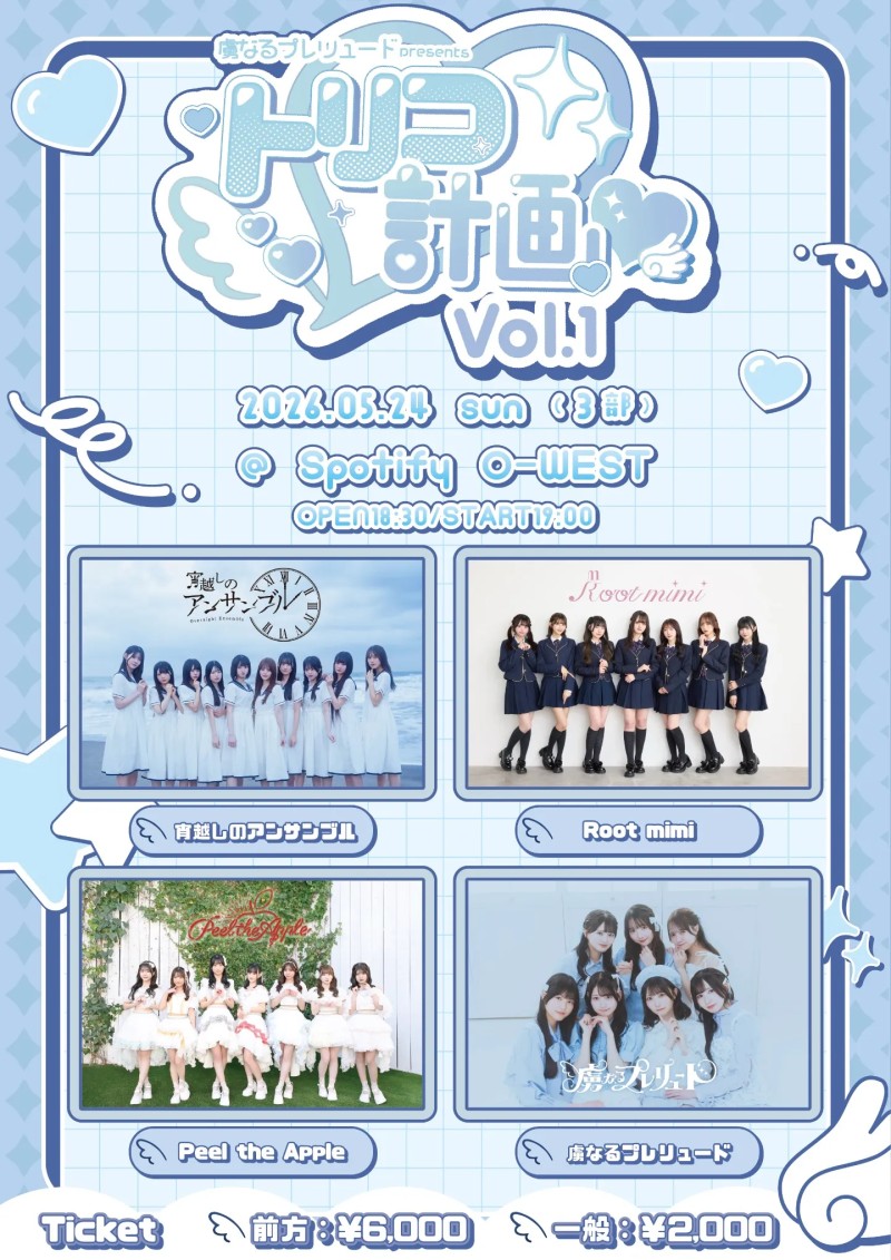 前方チケット¥6,000整理番号順入場1ドリンク別6歳以上チケット必要