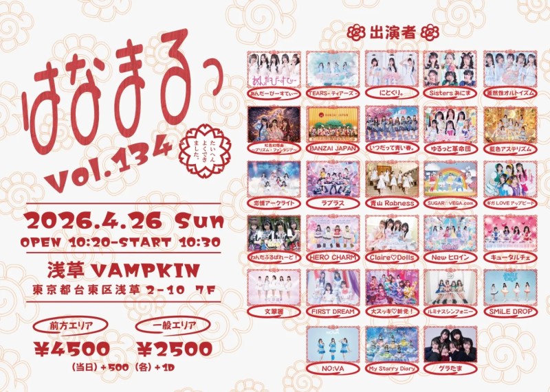 ■再入場可(別途1D) ■声出し可(マスク着用は任意) ■ジャンプ可 【注意事項】 ■リフト、ダイブ、サーフ、モッシュ行為等の禁止。 ■泥酔者の入場不可。 ■イベント中の盗難・紛失についての一切の責任は負いません。 ■他のお客様の迷惑となる行為は全面禁止です。ルールをお守り頂けないお客様に対しては、退場処分とさせて頂きます。 ■LIVE中の録画録音撮影は各グループ様のレギュレーション対応となります。 ■入場時に顔写真付き身分証明書の確認をする場合がございます。ご提示頂けない場合、入場はお断りさせていただきます。その場合、チケットの払い戻しはいたしませんのでご了承ください。 ※顔写真付き身分証をお持ちでない場合は本人確認のできる身分証、証明書をお持ちください。 ■場内、ロビーなどでのご歓談はお控えください。 ■出演者やお客様の都合による返金対応などは一切応じられませんので予めご了承ください。