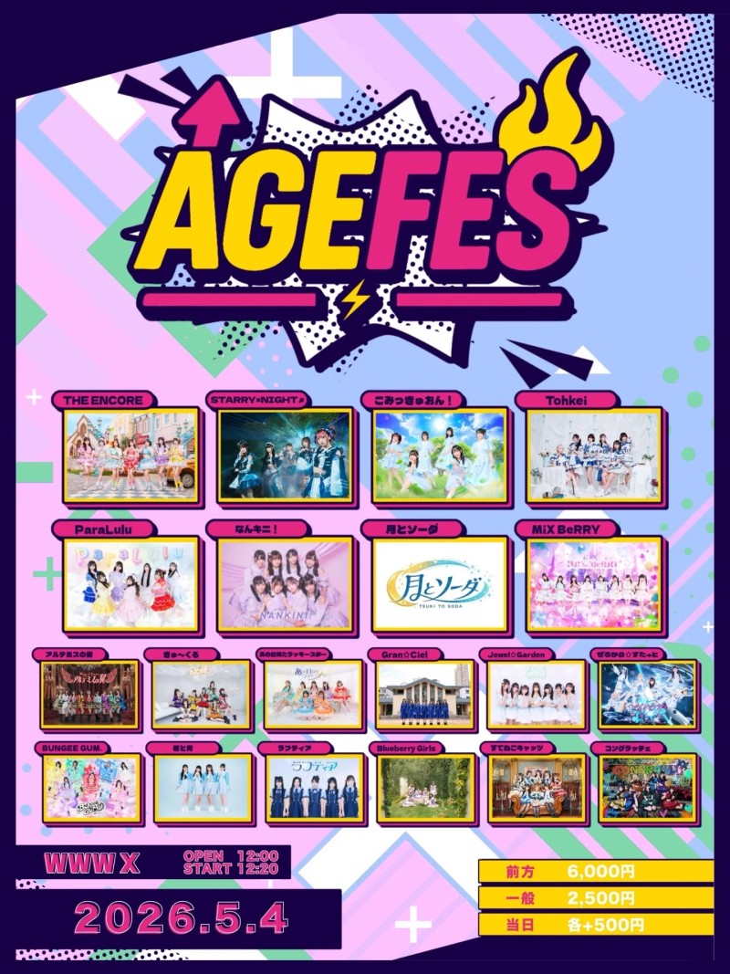 前方(当日)¥6,500整理番号順入場、ドリンク代別