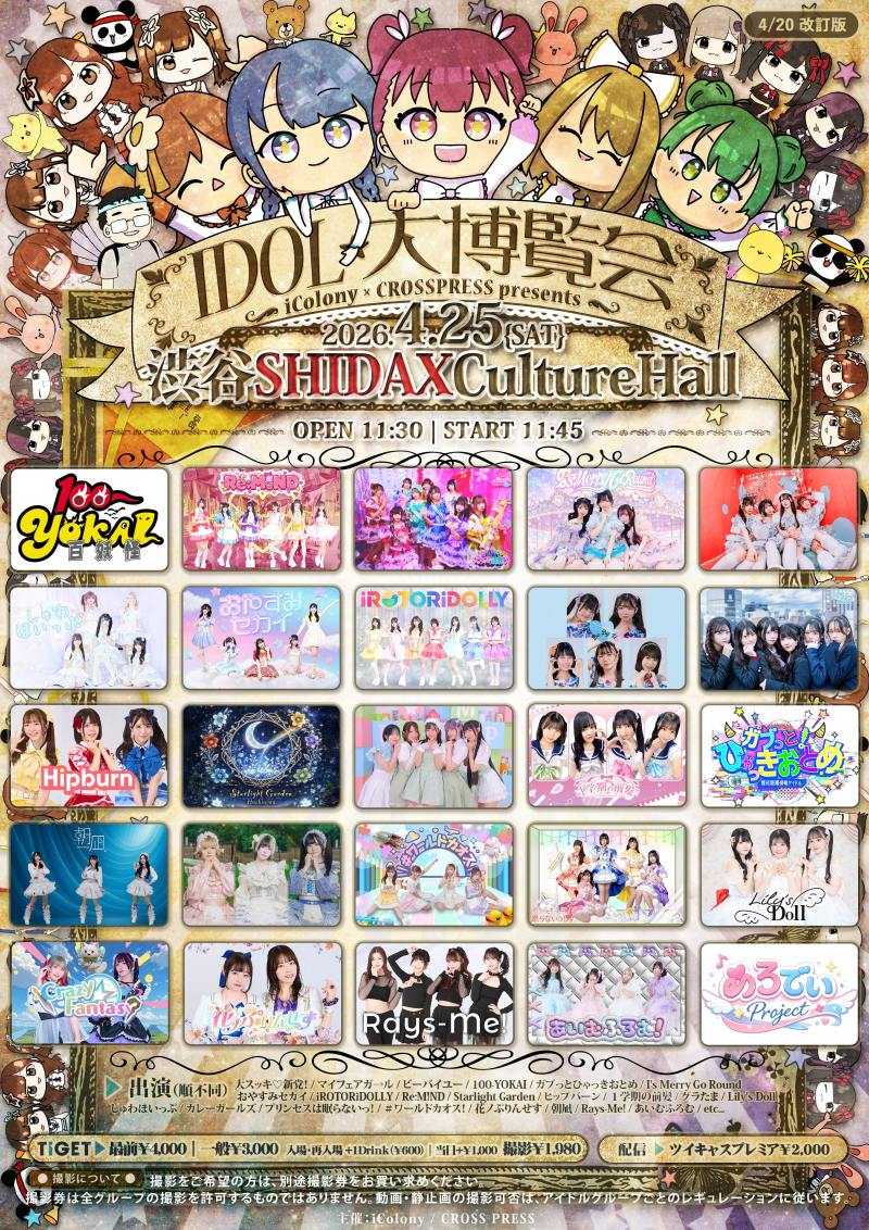 | 19:05~19:20 | 100-YOKAI 特典会時間: 20:00~21:00 |