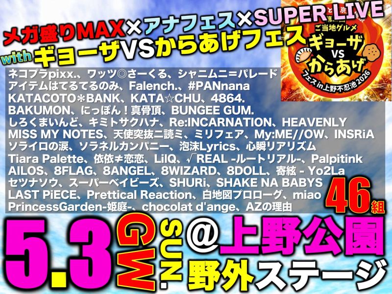 メガ盛りMAX×アナフェス×SUPER LIVE 2026GWスペシャル!! with ギョーザ VS からあげフェス in 上野不忍池2026