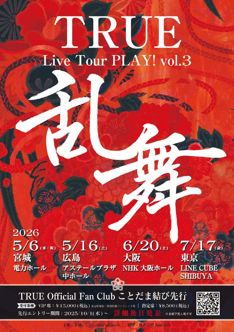 TRUE Live Tour PLAY! vol.3 -乱舞-。FC申込み特典:各会場抽選で10名様に当日サプライズイベント参加。
