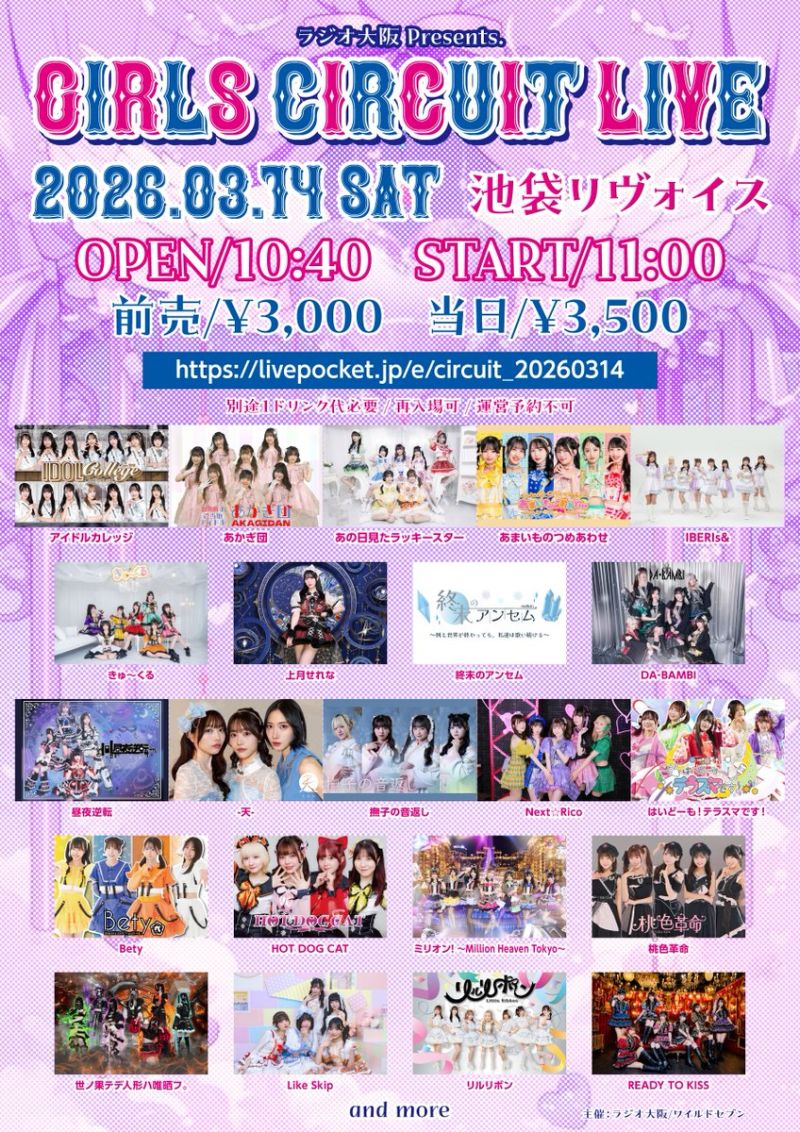 ラジオ大阪 Presents. GIRLS CIRCUIT LIVE 別途1ドリンク代必要/再入場可/運営予約不可