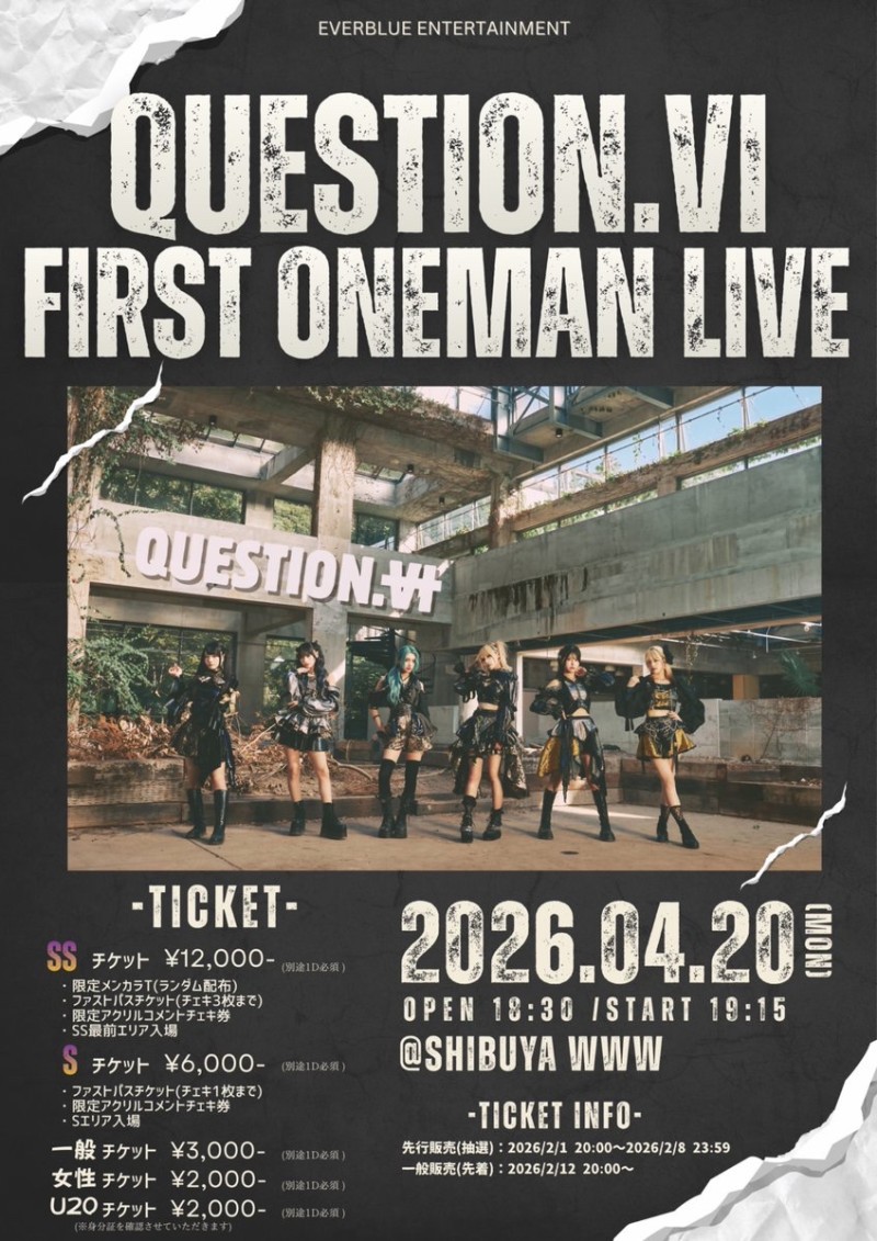 これまで積み重ねてきた想い、出会ってくれたすべての人への感謝、そしてここから始まる未来を、この夜に全部ぶつけます。QUESTION.VIの「今」と「覚悟」を、音楽とパフォーマンスで全力で届けます。この瞬間を、あなたと一緒に作りたい。