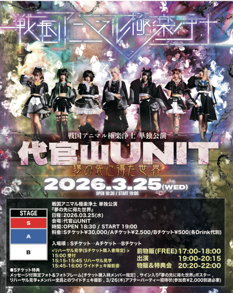 SチケットJP¥30,000メッセージ付限定フォト&フォトフレーム[チケット購入時メンバー指定]サイン入り『夢の先に得た世界』ポスターリハーサル見学+メンバー全員とのワイドチェキ撮影3/26(木)アフターパーティー招待状(参加費¥2000別途必要)
