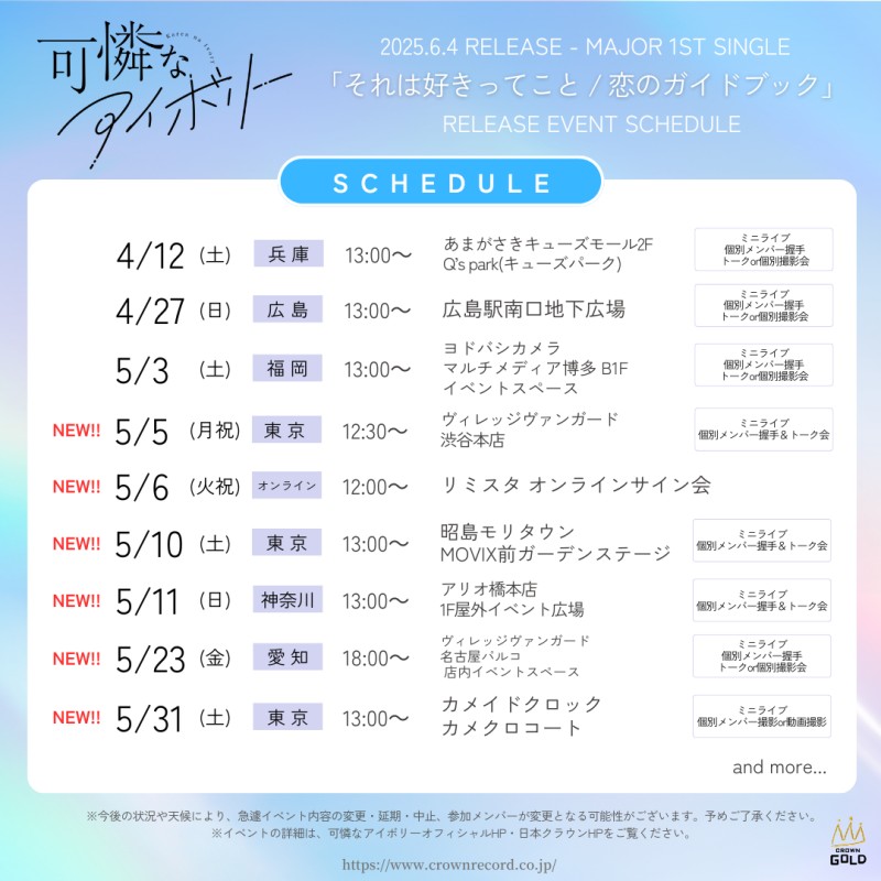 6月4日(水)にリリースする1stシングル「それは好きってこと / 恋のガイドブック」のリリースイベント。【内容】ミニライブ、個別メンバー握手、トークor個別撮影会