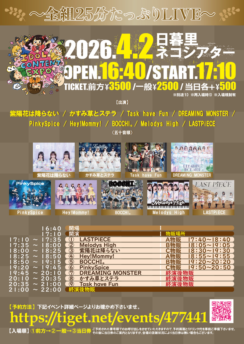※再入場時1D ※入場規制有 ■備考欄にて、お目当てのグループ名をご記入願います。