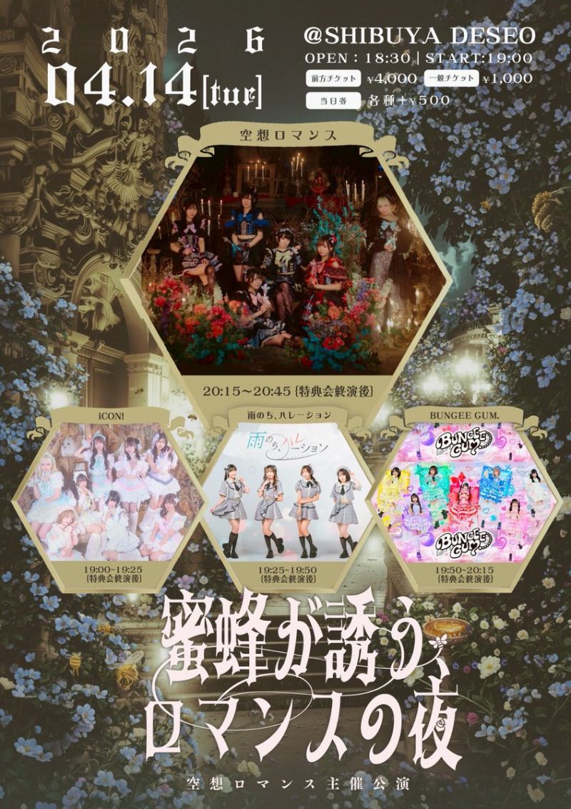 空想ロマンス主催の対バンライブ。新曲『ロマンス♡レスキュー隊』のお披露目が決定しています。